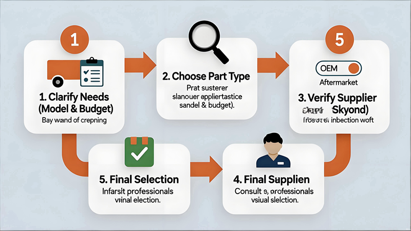 1. Klarigi Bezonojn:Laŭ la kamiono-modelo kaj buĝeto, elektu inter originalaj partoj kaj postmerkataj partoj.